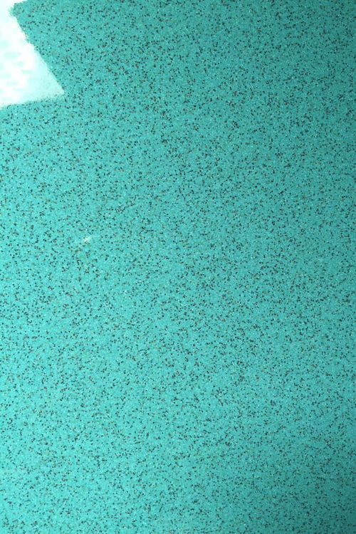 彩砂環氧地坪施工工藝復雜些、施工技術要求較高,其工藝技術構成如下:首先對地面基層要求平整度高,與其它環氧地坪一樣,要對地面進行打磨處理,同時真空吸塵、保證施工環境不受污染;其次對地面進行修補找平,然后施布環氧樹脂底涂;再次將顆粒狀彩色石英砂和高性能環氧樹脂混合,混合比例一般為 1:5~9(樹脂:彩砂),然后用鋪砂器鋪設彩砂層,鋪設厚度一般2~8mm、通常2~5mm,并用抹平機進行壓實整平,形成整體無縫的環氧彩砂層;第四約24小時后進行面層涂刷工序,可以是刮涂和滾刷、封閉環氧彩砂層的空隙,形成密閉的整合面層,并可根據要求做成適度凹凸防滑面和平滑面。